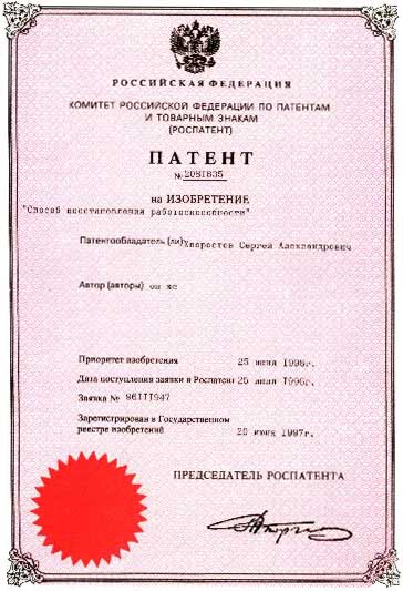 № 2081635 от 25.06.96 г. на изобретение "Способ восстановления работоспособности";