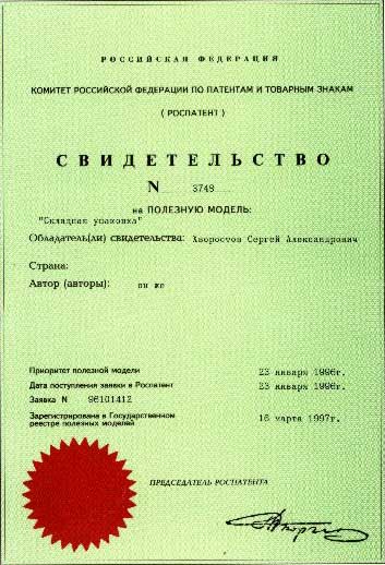 № 3748 от 23.01.96 г. на промобразец "Складная упаковка";